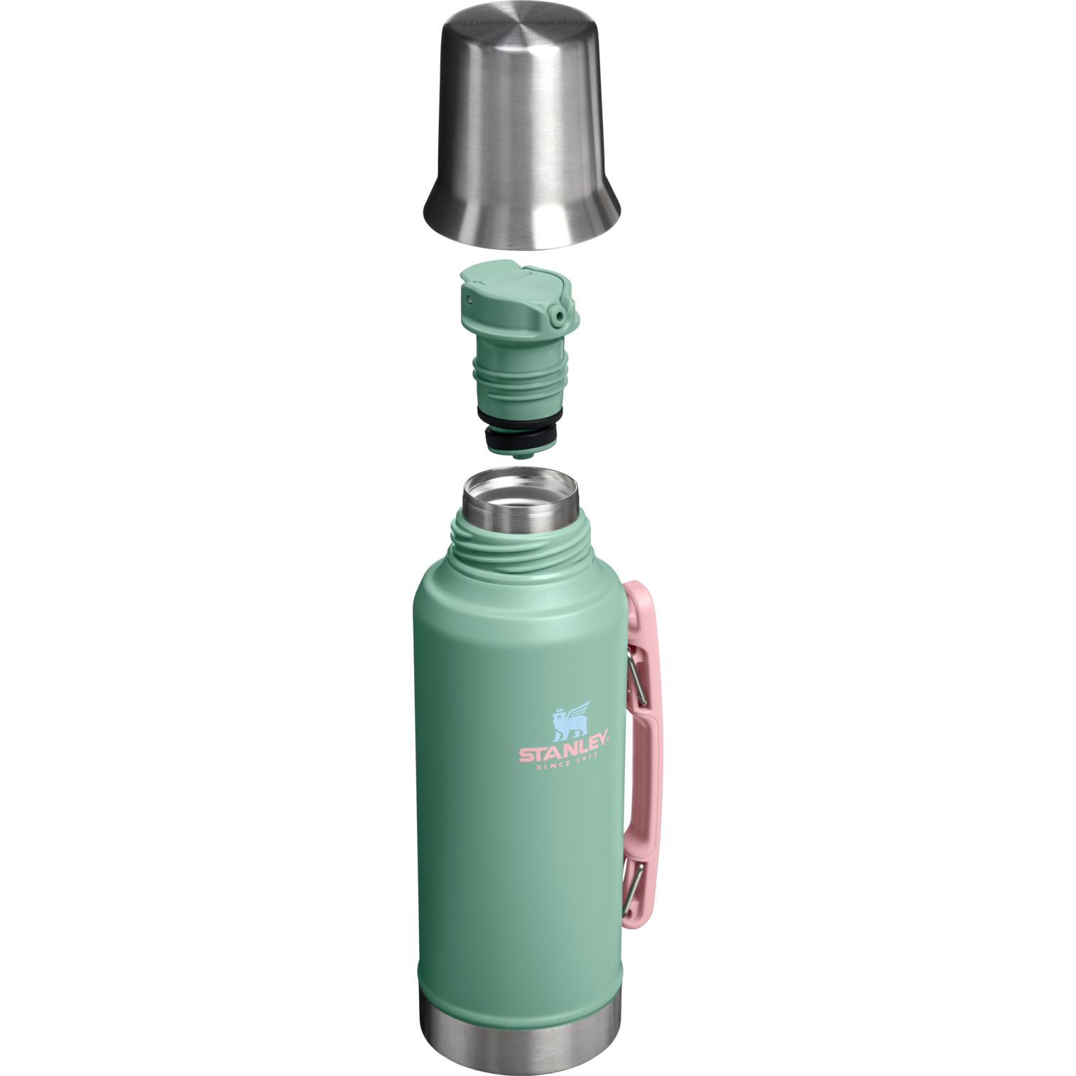 Balance achieved. In Antonela’s Green, the Stanley 1913 x Anto Collection is a strong blend of sage-like serenity. The 1.3-quart High Precision Flow Mate System features a unique stopper. No twisting needed. The trigger button is designed to give you a continuous pour. Shaped like a mate gourd, the insulated lid doubles as a mug, so you can find your flow for the day.