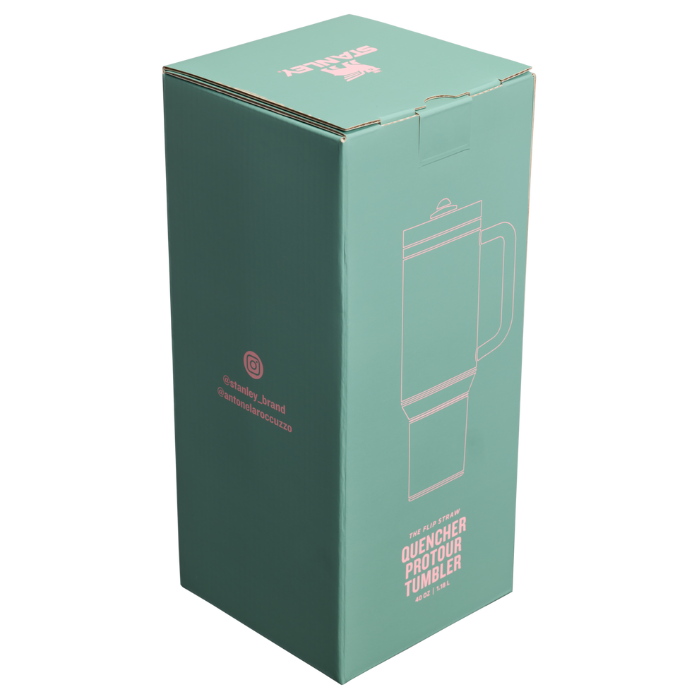 Balance achieved. In Antonela’s Green, the Stanley 1913 x Anto Collection is a strong blend of sage-like serenity. The 40-ounce Quencher® ProTour Tumbler features a leakproof Flip Straw lid. Sip quick — just flip up the built-in straw and find your flow for the day.