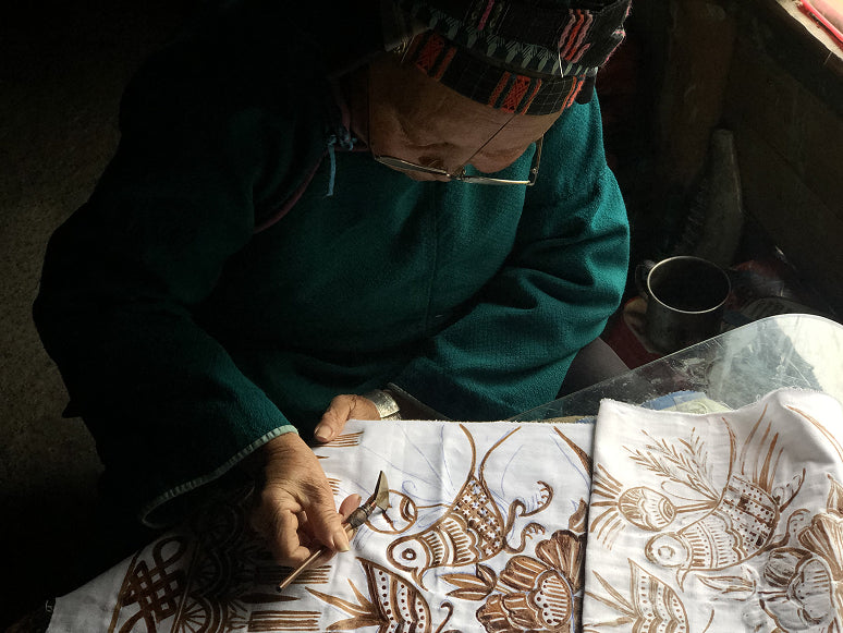 Freedom Women draws from a symbolic bird of the Miao tribe in the Guizhou region. The lively design reflects the free hearts and creative minds of the craftswomen, while the bold painting style reflects their vitality and character.