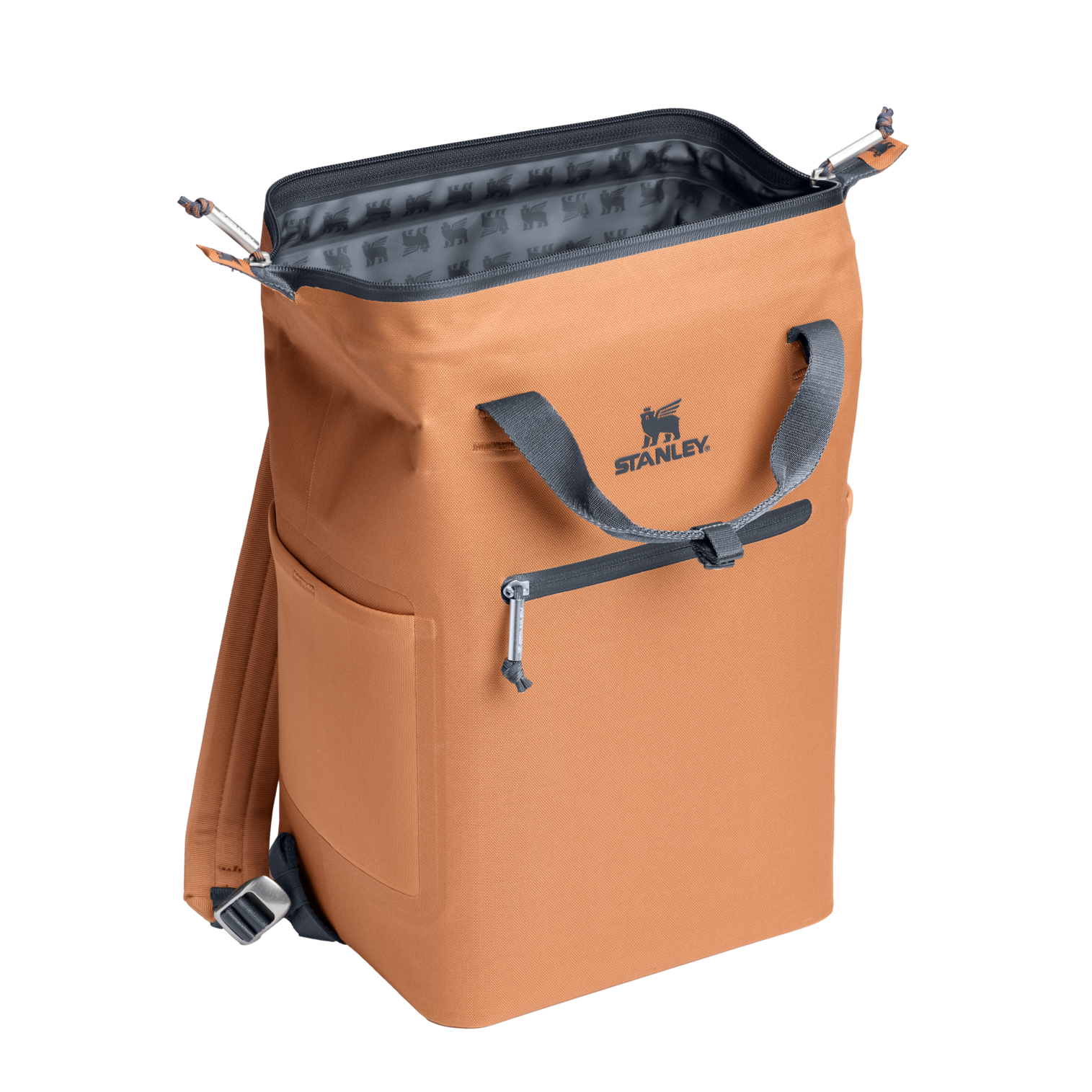 There’s even a mesh pocket designed to fit your Quencher or bottled beverage of choice. The unique “doctor’s bag” hinge top pops open to help with unpacking, and padded straps make carrying more comfortable. Load up with reusable ice packs, pop it shut and the sturdy zipper keeps it all safely stored. A discreet zipper pocket on the cooler’s back helps to protect valuables. From smoothies to fresh sandwiches, your favorite wine and beverages are ready to share. Don’t forget to pack all your favorite snacks and drinks in Stanley style.