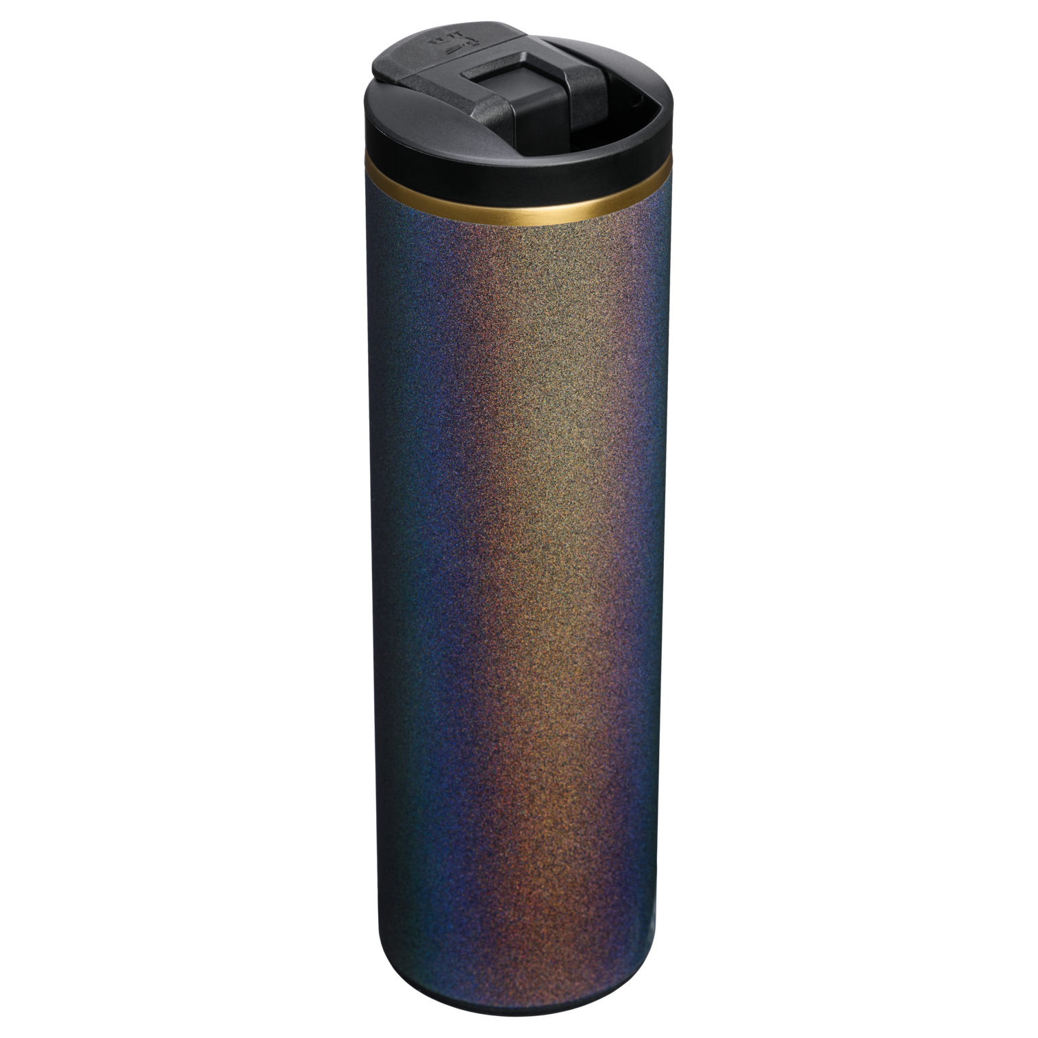 The 16-ounce Transit Flip Top Mug has premium AeroLight™ technology that makes it 33% lighter than standard stainless steel. Featherweight spun-steel insulation keeps your drink at the right temperature for hours. Matching silicone at the lid tab and footpad makes opening, closing and setting it down quieter.