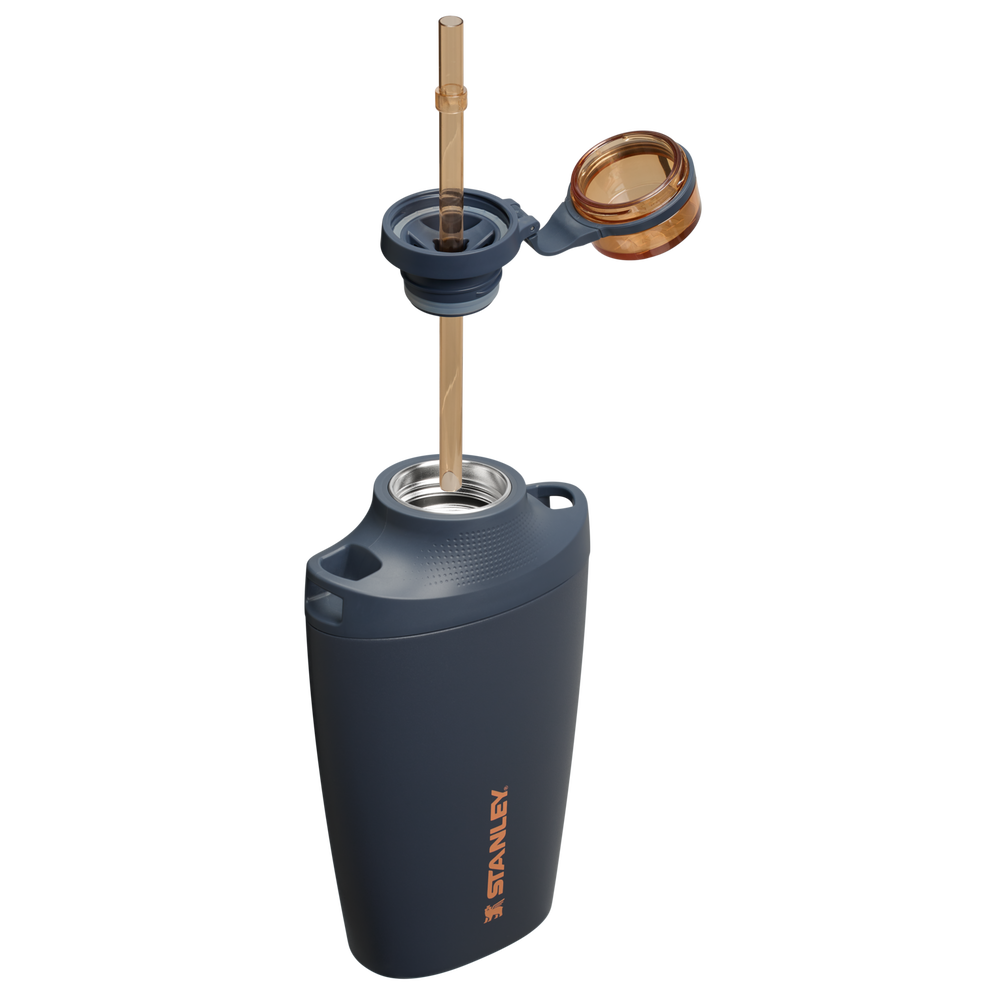 To fill the Stanley Cross Bottle, spin the lid off along the hinge and twist it shut for a leakproof seal. The convenient Tritan lid cover stays tethered while you drink. Just undo the cap to reveal the removable straw, and twist it back on to protect your sip space. Recycled stainless steel and double-wall vacuum insulation means your water stays ice cold for hours. Whether you’re exploring new cities or sprinting to class, The Stanley Cross Bottle is ready when thirst strikes.Â