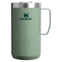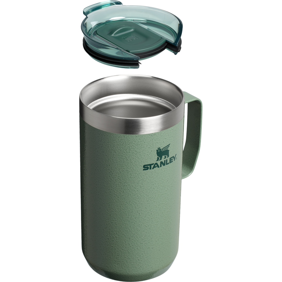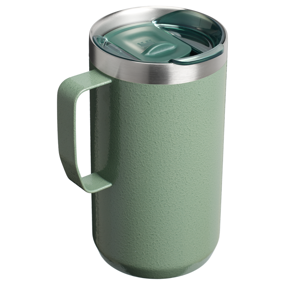 Just the right size for long mornings or anytime you need a fuller cup. The 24 ounce Stay Hot Camp Mug has the legendary performance you expect from a Stanley, with fewer trips to refill. This one is built to last, with solid 18/8 stainless steel construction. Double-wall vacuum insulation keeps your favorite drinks hot for hours, and the secure press-fit Tritan™ Drink-Thru Lid prevents splashes and makes sipping easy. Keep this insulated mug with a handle and lid with you in the backyard, take it on the road, or enjoy it while lounging by the fireside.