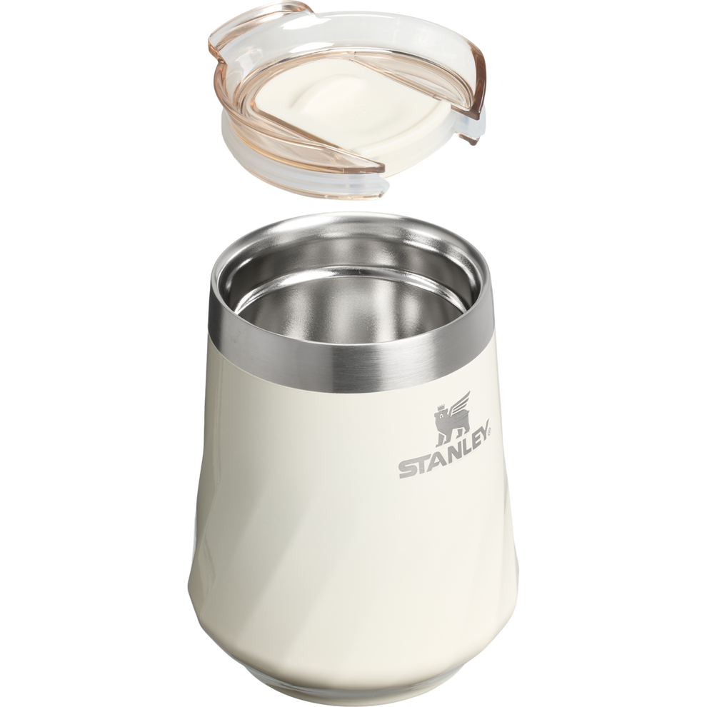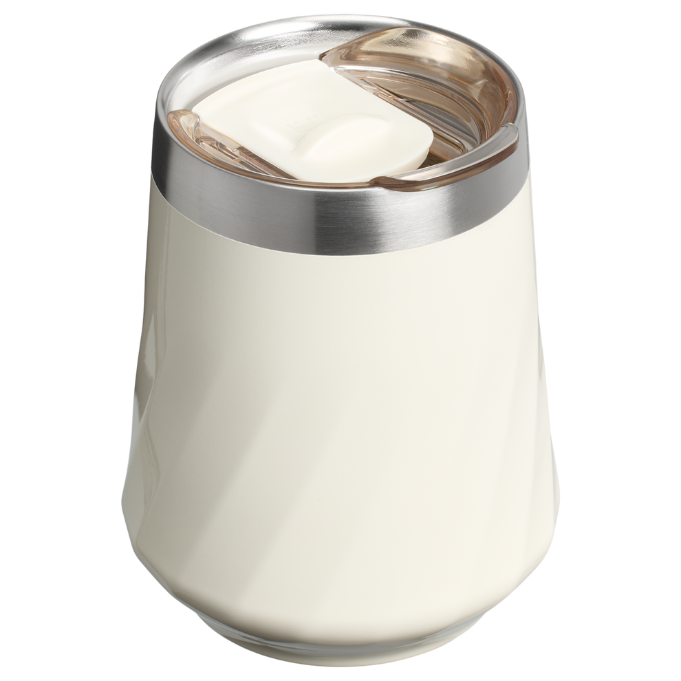 This refined version of the Reserve Wine Tumbler brings your best sips to the next level. Featuring a subtle, swirling texture, it’s got a finish that shimmers in the light. Graceful in form, this insulated wine tumbler is topped with a translucent lid for the final touch. Polished and elegant.