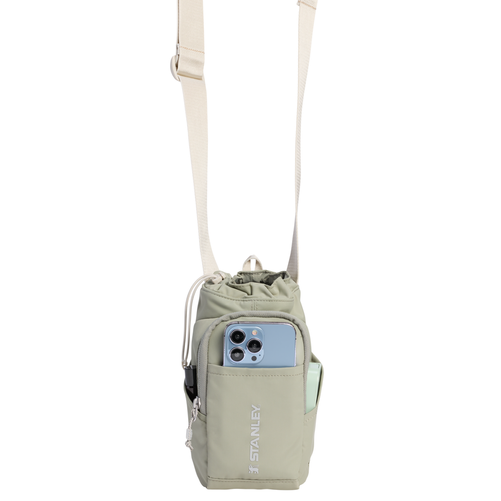 The Vitalize™ Carry-All holds keeps your hands free, and your hydration close. Built to fit your IceFlow™ Tumblers and Bottles with room for essentials. Slip your bottle in and lock it down with the drawstring bottle cinch. The large zippered front pocket has room for your phone and wallet. Your phone also fits in the front slip pocket for easy access — or to film your workout or the latest dance . Clip your keys or headphones to the side-snap clip and slide your sunglasses into the side pocket. Sling the adjustable shoulder strap on and get started.