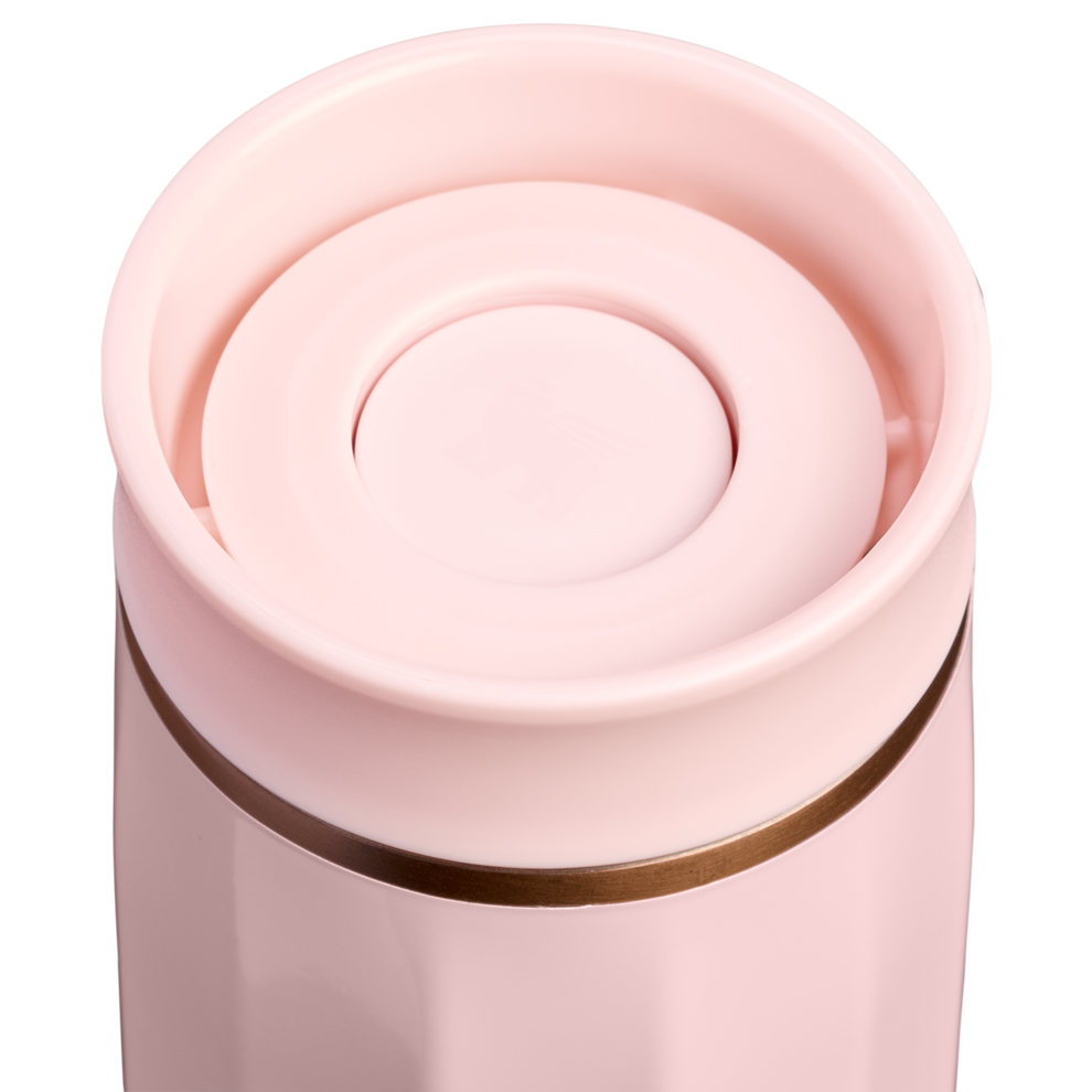 Sip in 360 degrees with the 16-ounce Transit Surround Mug. Just push the center button down to open and drink from any point around the rim – push again and it’s leakproof. Crafted with a faceted exterior to fit your style and your commute, and premium AeroLight™ technology to make it significantly lighter than standard stainless steel. Featherweight spun-steel with vacuum insulation keeps your drink at the right temperature for hours. A soft silicone footpad means quiet landings everywhere your day takes you.